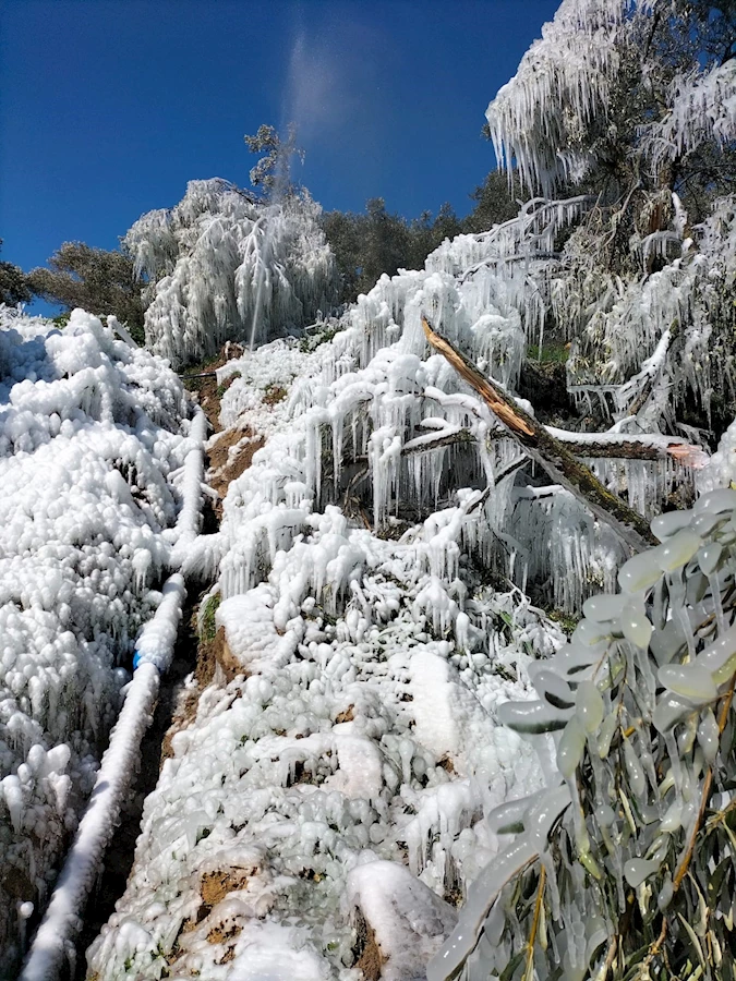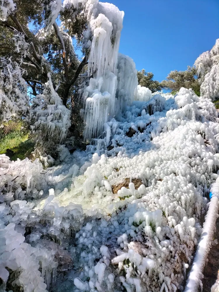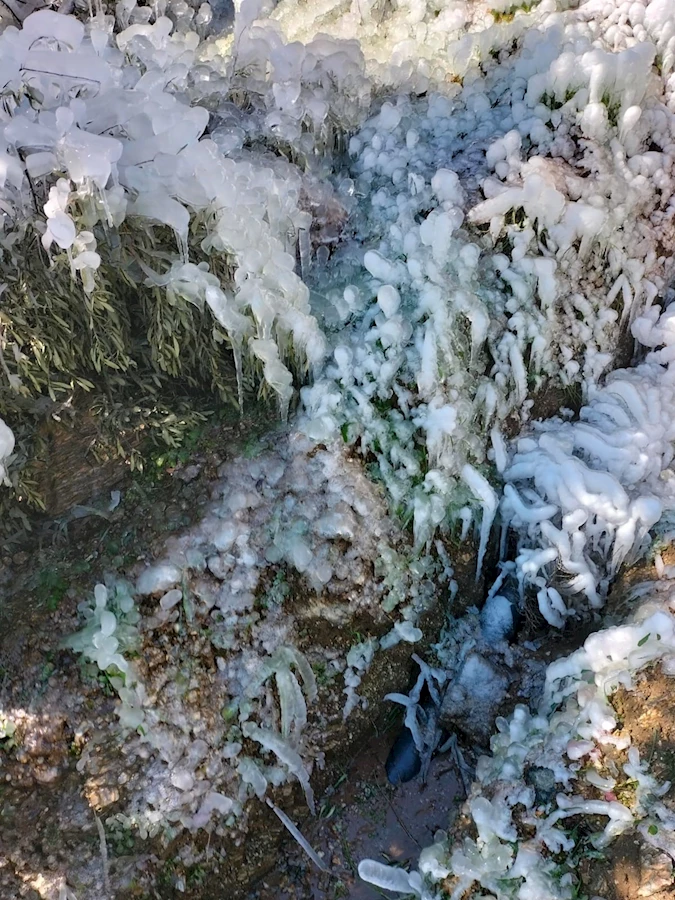 Yurt genelinde etkisini sürdüren soğuk hava Aydın’ın Buharkent ilçesinde de etkisini gösterdi. 160 rakımlı kırsal bölgede Bircan Uysal’a ait tarlada sulama için kullanılan su borusu henüz bilinmeyen bir nedenle patladı. Patlayan borudan havaya fışkıran su soğuk havanın etkisiyle hemen donanarak, etrafına buz kristalleri ve buz sarkıtları bırakıp muhteşem bir manzara oluşturdu. Sabahın erken saatlerinde tarlasına gelen Uysal, karşılaştığı kartpostallık manzarayı cep telefonu kamerası ile kaydederek sosyal medya hesabında paylaştı.